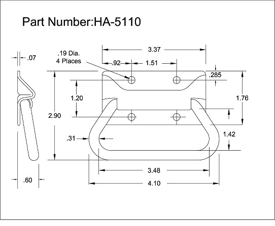 Chest Handle-No Return Spring, 90 Degree stop..No Holes, 160 Gr.Tested to 400 Lbs. tension without significant deformation to Plate or Handle., 130 Pcs per box