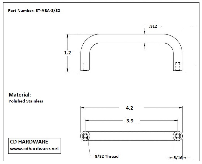 4.2 by 1.2 Stainless Handle, 8/32 Thread size